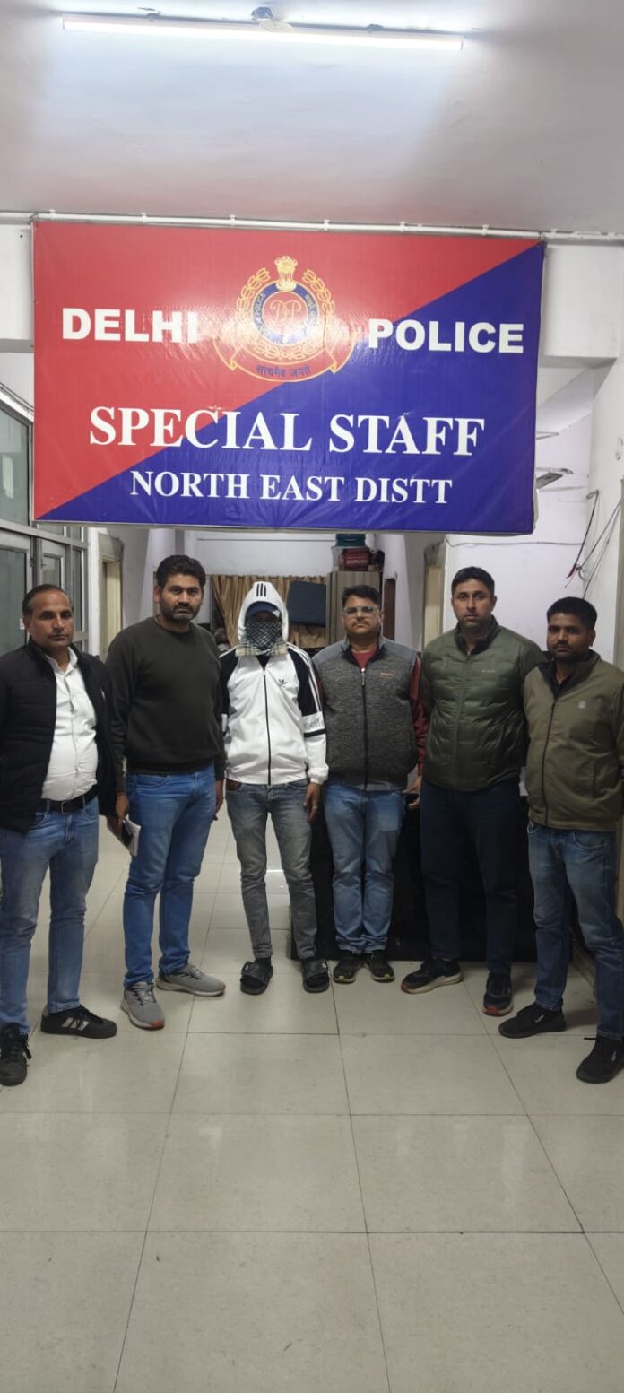 दिल्ली के नॉर्थ-ईस्ट जिले की स्पेशल स्टाफ टीम ने बड़ी सफलता हासिल करते हुए लंबे समय से फरार चल रहे एक शातिर आरोपी को गिरफ्तार कर लिया है। आरोपी हथियार के बल पर लूट के एक मामले में वांछित था और गिरफ्तारी से बचने के लिए लगातार ठिकाने बदल रहा था।