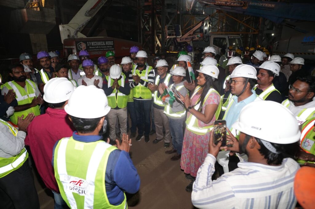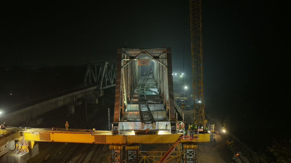 The installation posed significant engineering challenges due to the massive size of the girder and the requirement for precise placement. The structure was erected over an active Indian Railways track through a 32-metre radial shifting operation, executed using advanced construction techniques, meticulous structural calculations and carefully planned sequencing. The complex operation was carried out during night hours with the support of heavy-duty cranes and hydraulic jacks. Despite adverse weather conditions and operational constraints, the work was completed safely and within the stipulated timeframe.