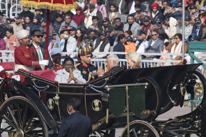 गणतंत्र दिवस समारोह की शुरुआत प्रधानमंत्री नरेंद्र मोदी द्वारा राष्ट्रीय युद्ध स्मारक जाकर शहीद सैनिकों को श्रद्धांजलि अर्पित करने से हुई। इसके बाद राष्ट्रपति द्रौपदी मुर्मू मुख्य अतिथियों के साथ राष्ट्रपति के अंगरक्षकों की सुरक्षा में पारंपरिक बग्घी में कर्तव्य पथ पहुंचीं, जहां उनका भव्य स्वागत किया गया।
