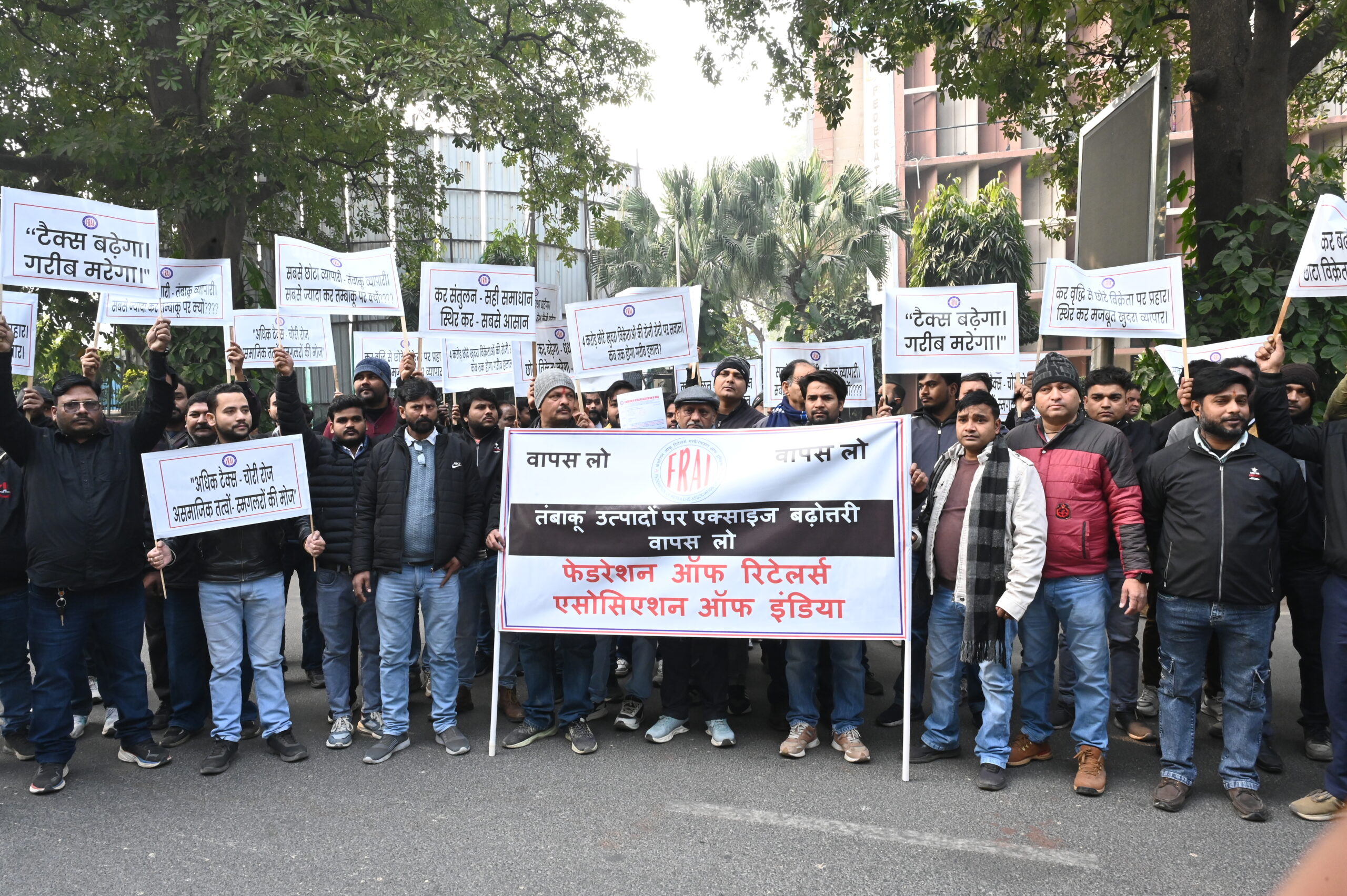 New Delhi, 9th January 2026: Thousands of small retailers, hawkers and pavement sellers from across Delhi poured on the streets today in fear and anguish, protesting the sharp increase in taxes on legal tobacco products. With no alternative source of income to fall back on, retailers said the sudden price shock threatens the survival of their small businesses and the well-being of their families. They held demonstrations across the capital and sat in dharna outside the Ministry of Finance, pleading for an immediate rollback of the excessive tax hikes and a re-notification of sensible tax rates rooted in Indian reality that can protect demand and save livelihood.